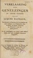 Verklaaring der geneezingen in 's Hage gedaan door Jaques [sic] Rainaud, en dienende tot staaving der advertentien ten zynden behoeve in de Haarlemse, Rotterdamse, en Haagse Couranten van November 1778 bekend gemaakt, en tot wederlagging van zeekere contra advertentien daar tegen in dezelfde Courante uitgegeeven / [Pierre Lyonet].