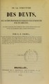 De la structure des dents : de l'action pernicieuse exercée par le mercure sur ces organes, et des dangers de l'emploi des pâtes mercurielles pour le plombage des caries dentaires / par A.F. Talma.