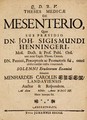 Theses medicae de mesenterio ... / [Johann Sigismund Henninger].