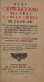 De la génération des vers dans le corps de l'homme. De la nature & des especes de cette maladie, de ses effets, de ses signes, de ses prognostics: des moyens de s'en préserver, des remedes pour la guérir, &c / par mr. Nicolas Andry ... Avec trois lettres écrites à l'auteur, sur le sujet des vers; les deux premieres d'Amsterdam par m. Nicolas Hartsoeker, & l'autre de Rome par m. Georges Baglivi.