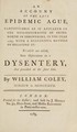 An account of the late epidemic ague : particularly as it appeared in the neighbourhood of Bridgnorth in Shropshire, in the year 1784; with a successful method of treating it: to which are added, some observations on a dysentery, that prevailed at the same time / by William Coley.
