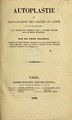 Autoplastie, ou, Restauration des parties du corps qui ont été détruites : à la faveur d'un emprunt fait à d'autres parties plus ou moins éloignées / par Fréd. Blandin.