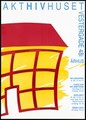 The red silhouette of a red and yellow house bearing details of services offered for those with HIV by AktHIVHuset, Århus, Denmark. Colour lithograph, ca. 1996.