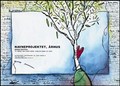 A tree with a red heart pinned to the trunk and a piece of string attached to a needle pinned to the paper; with a border littered with numerous signatures; an advertisement for the Navneprojektet [The Names Project] in Århus, a project in memory of AIDS victims in Denmark. Colour lithograph, ca. 1996.