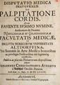 Dissertatio medica inauguralis de cordis palpitatione : Quam, praeside Deo opt. max. ex authoritate magnifici rectoris, D. Lucae Schacht ... Nec non amplissimi senatûs academici consensu, & almae facultatis medicae decreto, pro gradu doctoratus, summisque in medicina honoribus & privilegiis ritè ac legitimè consequendis, eruditorum examini subjicit Eduardus Wetenhallus ... Ad diem 3 August. locô horisque solitis.