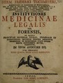 Institutiones medicinae legalis, vel forensis, in quibus praecipuae materiae civiles, criminales et consistoriales, secundum principia medicorum decidendae ... traduntur ... / [Hermann Friedrich Teichmeyer].
