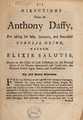 Directions given by Anthony Daffy, for taking his safe, innocent, and successful cordial drink, called, Elixir salutis / [Anthony Daffy].
