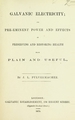 Galvanic electricity : its pre-eminent power and effects in preserving and restoring health made plain and useful / by J. L. Pulvermacher.