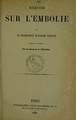 Mémoire sur l'embolie / par Rudolphe Virchow ; traduit de l'allemand par F. Pétard.