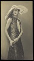 Cecil Beaton, in drag; dressed in a patterned dress. Photograph, ca. 1925.
