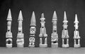 M0019325EA: Seven carved wood statues representing Oma, a household god: front view