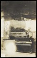 Güstrow prisoner of war camp: the interior of the theatre, including a piano. Photographic postcard, 1916.