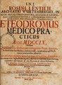 I.N.J. Rosini Lentilii archiatri Wurtembergici ... Eteodromus medico-practicus anni MDCCIX. Exhibens quid singulis diebus per integrum illum annum in functione sua medica, tam in praxi, quam rebus ad physicatum pertinentibus actum sit : curationes nempe morborum, consilia, litteraria commercia, inspectiones legales, aperturas corporum demortuorum, visitationes officinarum, & alia naturam & artem illustrantia. In usum practicorum juniorum magno studio, indefesso labore, methodo hactenus non tentata, adornatus & partitione menstruali editus affixo, sub calcem operis, indice rerum & verborum locupletissimo / [Rosinus Lentilius].