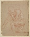 A man holding his nose to avoid breathing in a miasma. Drawing.