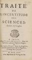 Traité de l'incertitude des sciences / traduit de l'anglois [by N. Berger, from 'Reflections upon learning'].