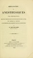 Mode d'action des anesthésiques par inspiration : moyens de prévoir quels agents peuvent en jouer le role, d'en composer de nouveaux, et de modifier leurs propriétés suivant les indications / par M. Édouard-Robin.