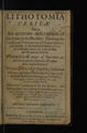 Lithotomia vesicae: hoc est, accurata descriptio calculi vesicae ... imprimis vero methodi, qua tam in foeminis, quam in viris sit extrahendus; ubi quidem diversae operationes describuntur, & instrumenta quaedam singularia depinguntur, primum ... / germanico idiomate in lucem edita; jam vero ... aucta, et a Henrico Schobingero ... in latinum translata, cui accesserunt epistolae aliquot virorum clarissimorum, de usu et abusu turundarum, post extractionem calculi adhibendarum.