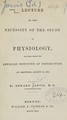 Lecture on the necessity of the study of physiology : delivered before the American Institute of Instruction at Hartford, August 22, 1845 / by Edward Jarvis.