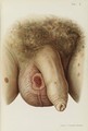 Coloured illustration of scrotum diseased with Syphilis.