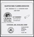 An advertisement for Durex condoms by the Mauritius Family Planning Association. Lithograph, ca. 1996.
