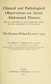 Clinical and pathological observations on acute abdominal diseases due to conditions of the alimentary tract and the uniformity of their origin : the Erasmus Wilson Lectures 1904 / by Edred M. Corner.