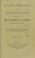 The claims of forensic medicine : being the introductory lecture delivered in the University of London, on Monday, May 11, 1829 / by John Gordon Smith.