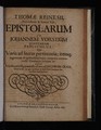 Epistolarum ad Johannem Vorstium scriptarum fasciculus: quo varia ad literas pertinentia ; itemque ingenuum de quibusdam hujus temporis controversiis theologicis judicium exponitur. Adjecta ... est und ad Jacobum Clauderum ; ex qua ejusdem de Beroso Anniano sententiam [sic] intelligi licet / [Thomas Reinesius].