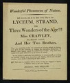Wonderful phenomen of nature : just arrived, and to be seen every day at the Lyceum, Strand, the three wonders of the age!!! : Miss Crawley, the beautiful albiness, and her two brothers.
