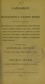 Catalogue of manuscripts & ancient deeds : among which will be found, the chartulary of Carisbrooke Castle, manuscript upon vellum, Josephus, Antiquitez des juifs, a fine manuscript upon vellum, splendidly illuminated, Glover's visitation of Yorkshire, a very curious collection of official papers relating to America, and other interesting articles, with some curious autograph letters : on sale, at the prices affixed for ready money, by Thomas Rodd, 9, Great Newport Street, London.