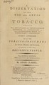 A dissertation on the use and abuse of tobacco : Wherein the advantages and disadvantages attending the consumption of that entertaining weed, are particularly considered. Humbly addressed to all the tobacco-consumers in Great-Britain and Ireland, but especially to those among religious people .... / By Adam Clarke.