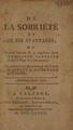 De la sobrieté et de ses avantages. Ou le vray moyen de se conserver dans une santé parfaite jusqu'à l'âge le plus avancé / Traduction nouvelle de Lessius et de Cornaro. Avec des notes. Par Mr. D[e] L[a] B[onodière].