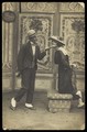 French prisoners of war, some in drag, in a performance of "Les maris de Léontine" at Sennelager prisoner of war camp in Germany. Photographic postcard, 1918.