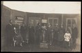 French or Belgian prisoners of war, some in drag, posing on stage during a crowded scene of "La dame aux camélias"; at Sennelager prisoner of war camp in Germany. Photographic postcard, 191-.