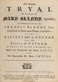 The genuine tryal at large of Mary Blandy, spinster, for poisoning her late father Francis Blandy : at the Assizes held at Oxford, for the county of Oxford, on Tuesday the third of March, 1752.