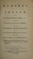 Remarks on a letter to Sir Robert Barker ... and George Stacpoole upon general inoculation, by John Coakley Lettsom ... / [Thomas Dimsdale].