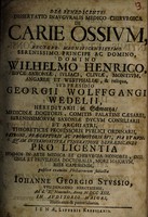Dissertatio inauguralis medico chirurgica de carie ossium ... / [Johann Georg Stuss].