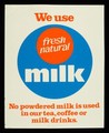 We use fresh natural milk : no powdered milk is used in our tea, coffee or milk drinks.