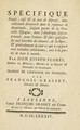 Spécifique simple, aisé et de peu de dépense, nouvellement découvert dans le royaume de Guatimala ... pour l'entiere et sûre guérison du mal horrible du chancre, de la lepre, et généralement de tout ce qui a rapport aux maladies vénériennes ... / Traduit de l'espagnol en françois, par François Grasset.