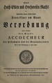 Eines hoch-edlen und hochweisen Raths der kayserlichen freyen Reichs-Stadt Franckfurt am Mayn Verordnung nach welcher der Stadt-Accoucheur die Hebammen und die Beyläuferinnen sich in ihren Verrichtungen zu achten haben.