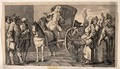 Doctor Rock, a medicine vendor, selling his wares from a horse-drawn carriage to a crowd. Engraving.