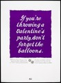 A warning about safe sex on Valentine's Day by AIDS Concern featuring two condoms within the message, Hong Kong. Colour lithograph, ca. 1995.