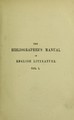 The bibliographer's manual of English literature : containing an account of rare, curious, and useful books, published in or relating to Great Britain and Ireland, from the invention of printing with bibliographical and critical notices, collations of the rarer articles, and the prices at which they have been sold / by William Thomas Lowndes.