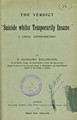 The verdict of 'suicide whilst temporarily insane' : a legal contradiction / by R. Henslowe Wellington.