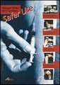 A man's hand holding a syringe poised to inject into his arm with five further smaller images showing the procedures for safe drug use; an advertisement by the Deutsche AIDS-Hilfe e.V. Colour lithograph by Torsten Schmidt and Detlev Pusch.