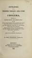 Outlines for a proper theory and cure of cholera, founded on known facts ... in the form of an academical examination / [John Wilkinson].