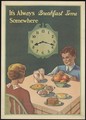 A boy and a girl sitting at the breakfast table, with a changeable clock face behind and slots for food on the table. Colour lithograph after Dorcy, 1935.