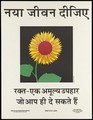 A sunflower, a symbol of bringing life back by giving blood; an AIDS prevention advertisement by the AIIMS Blood Transfusion Service and NGO AIDS Cell, New Delhi. Colour lithograph by N.R. Nanda, ca. January 1994.