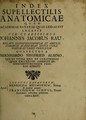 Index supellectilis anatomicae : quam Academiae Batavae quae Leidae est legavit vir clarissimus Johannes Jacobus Rau, rogatu illustrissimorum et amplissimorum academiae istius curatorum et urbis consulum / confectus a Bernhardo Siegfried Albino, qui et vitam ejus et curationem quam calculosis adhibuit instrumentorumque figuras addidit.