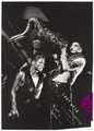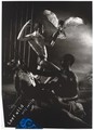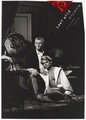 A man in a white bathrobe sits against the legs of a man dressed in a jacket and shirt with the head of a roaring lion to the left and the message to 'Live wild. Safe sex'; advertising the AIDS Information Line in Amsterdam. Colour lithograph by Hans Verschuuren for the Stuurgroep AIDSpreventie Homo's, 1991.