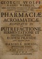 Georgii Wolffgangi Wedelii, Med. Doctoris, Consiliarii ... Pharmaciae acroamaticae disputatio III. De putrefactione, fermentatione et destillatione, eodem praeside / publicae disquisitioni subjecta à Daniele Boesio, ... ad diem Septemb. M DC LXXXV.